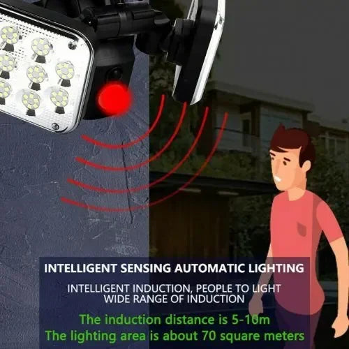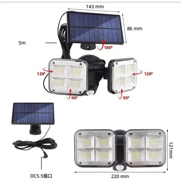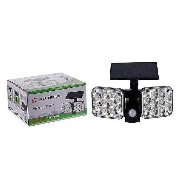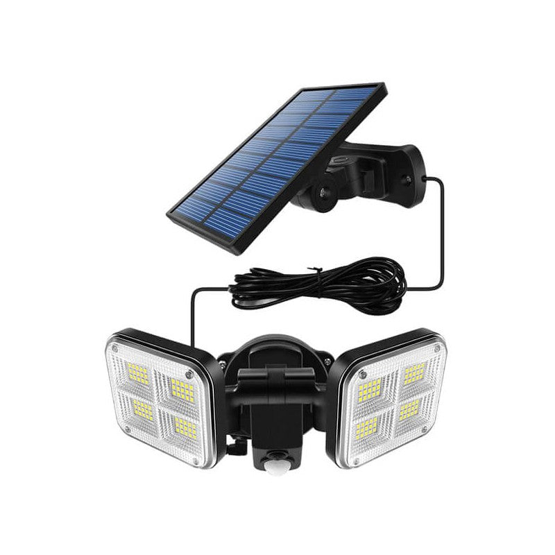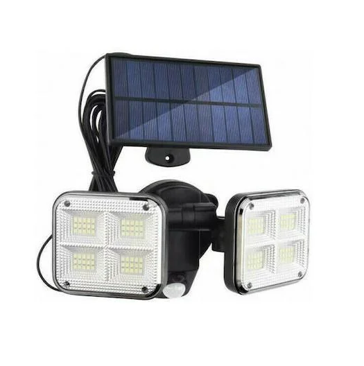 Ηλιακός προβολέας LED σε μαύρο χρώμα. Διαθέτει αισθητήρα κίνησης που έχει την ικανότητα να εντοπίζει μικρές μεταβολές στο περιβάλλον που έχουν προκληθεί, για παράδειγμα, από την κίνηση του ανθρώπινου σώματος, και να ενεργοποιεί τον προβολέα.