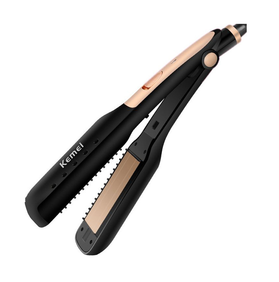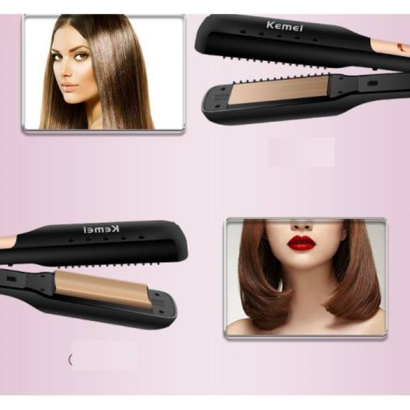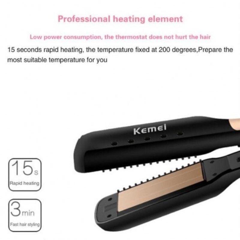Η πρέσα της Kemei έχει φαρδιές πλάκες για να κάνετε styling σε πιο πυκνές τούφες μαλλιών, εύκολα και γρήγορα. Συνήθως προτείνεται η χρήση τους για πυκνά και μακριά μαλλιά.