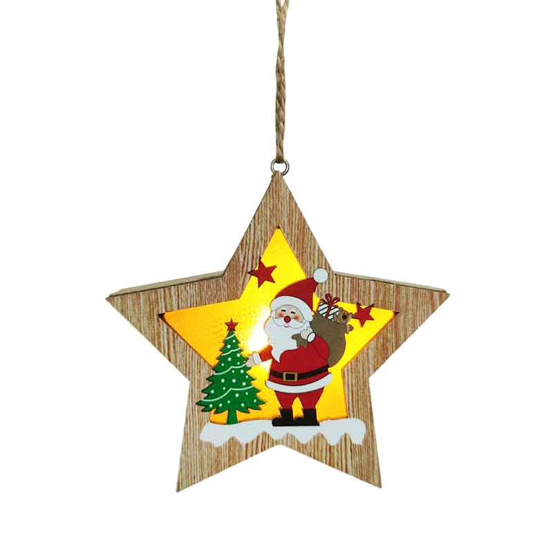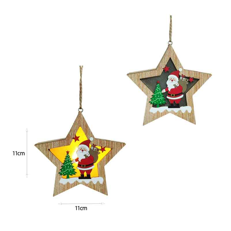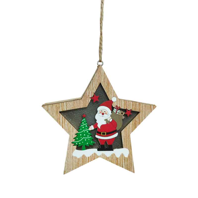 Ξύλινο χριστουγεννιάτικο σπιτάκι ύψους 9,5cm με φωτισμό LED (λειτουργεί με μπαταρία). Διακοσμημένο με Άγιο Βασίλη, έλατο και γιορτινές λεπτομέρειες, προσφέρει ζεστή και μαγική ατμόσφαιρα στο χώρο σας. Ιδανικό για το χριστουγεννιάτικο δέντρο, το τζάκι ή τη διακόσμηση τραπεζιού.