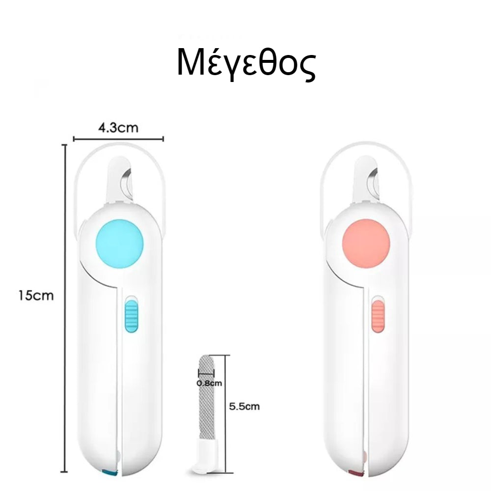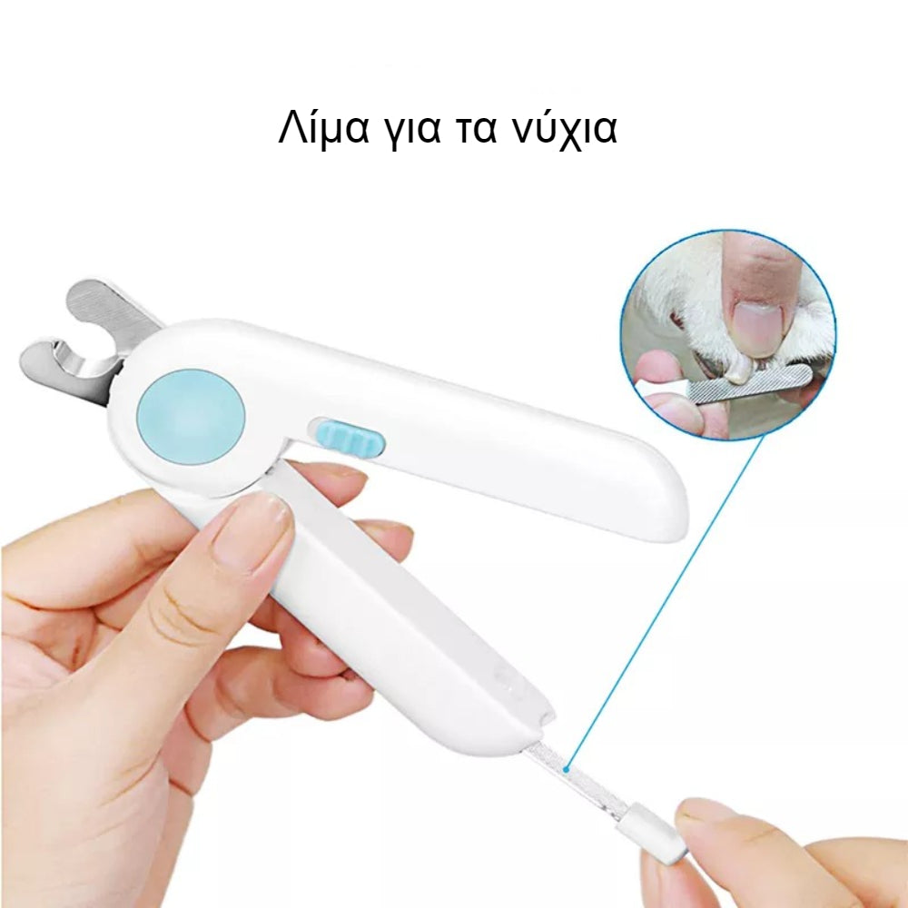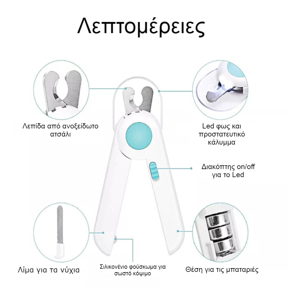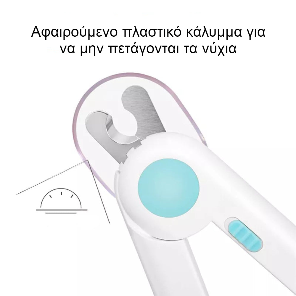 Νυχοκόπτης για κατοικίδια με πλαστικό καπάκι για να μην πετάγονται τα νύχια. Φως Led για να βλέπετε με λεπτομέρεια.