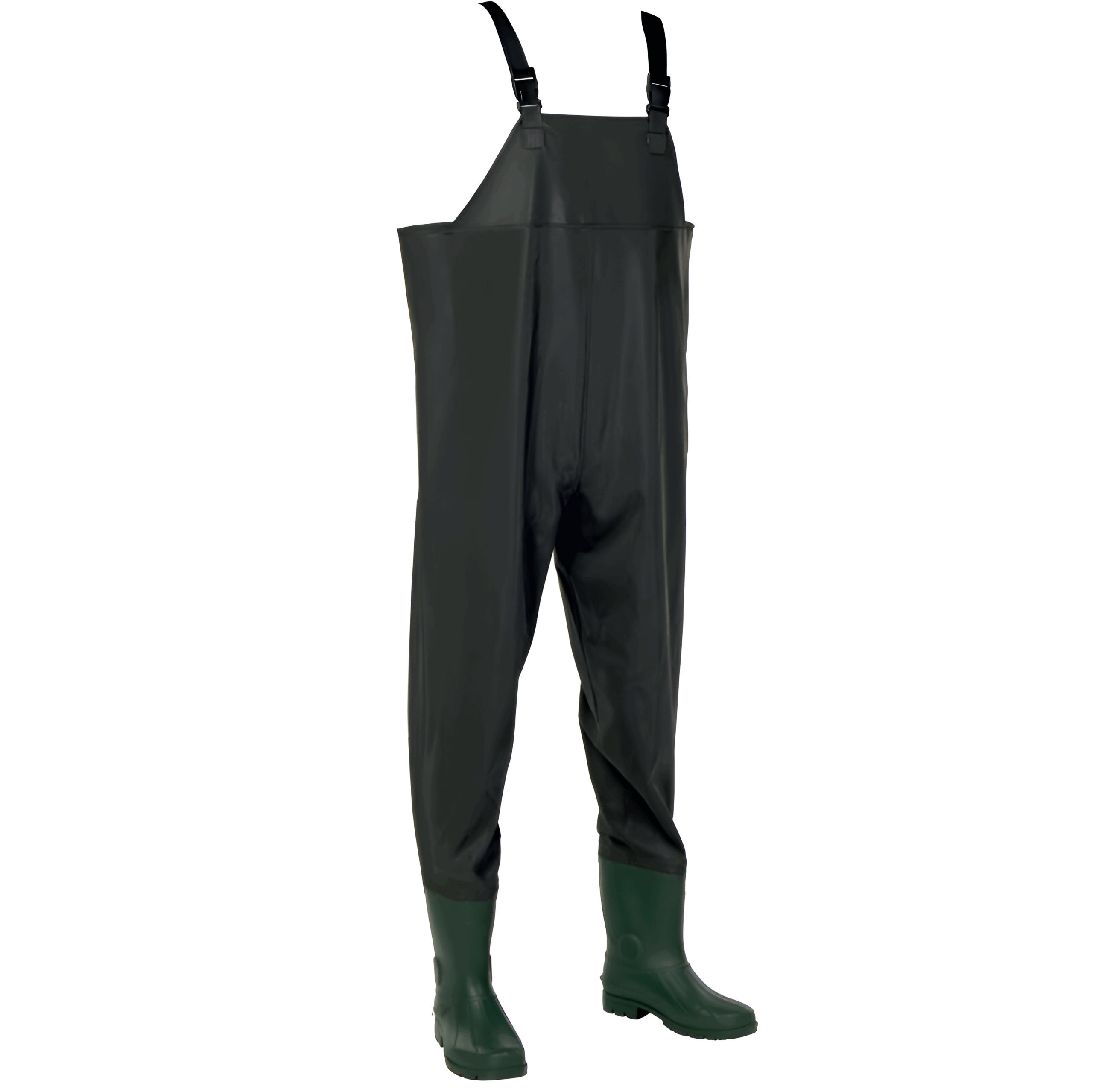Φόρμα εργασίας ολόσωμη με ενσωματωμένη γαλότσα, πλήρως αδιάβροχη, από εξαιρετικά ανθεκτικό υλικό υψηλής ποιότητας που πλένεται εύκολα και δεν ερεθίζει το δέρμα, κατάλληλη για κάθε είδους εξωτερική εργασία.