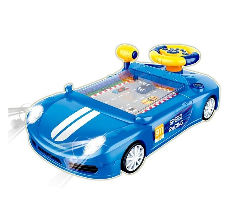 Παιχνίδι οδήγησης αυτοκίνητο σε σχεδιασμό κονσόλας με τιμονιέρα, με φωτισμό LED και αυξανόμενο επίπεδο δυσκολίας.