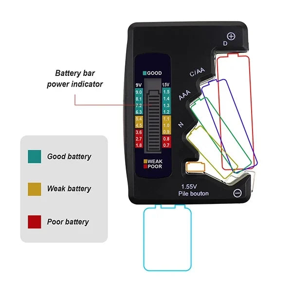 Εύρος δοκιμής: C, AA, AAA, D, N, 9V (6F22) και μπαταρία κουμπιού 1,55V