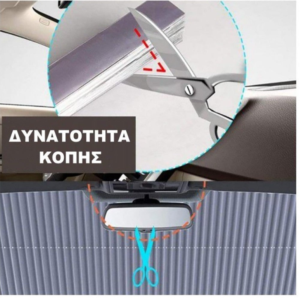Με αρχικό πλάτος 71cm, το σκίαστρο μπορεί να κοπεί όσο θέλετε, για να ταιριάζει απόλυτα στις διαστάσεις του αυτοκινήτου σας (το πλάτος αναφέρεται στην απόσταση από το ταμπλό έως την οροφή). ✂️