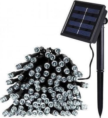 Ηλιακά φωτάκια led σε ψυχρό χρώμα με μήκος 20 μέτρα και φυσικά ανάβουν αυτόματα το βράδυ αφού έχουν φορτίσει την ημέρα με τον ήλιο.